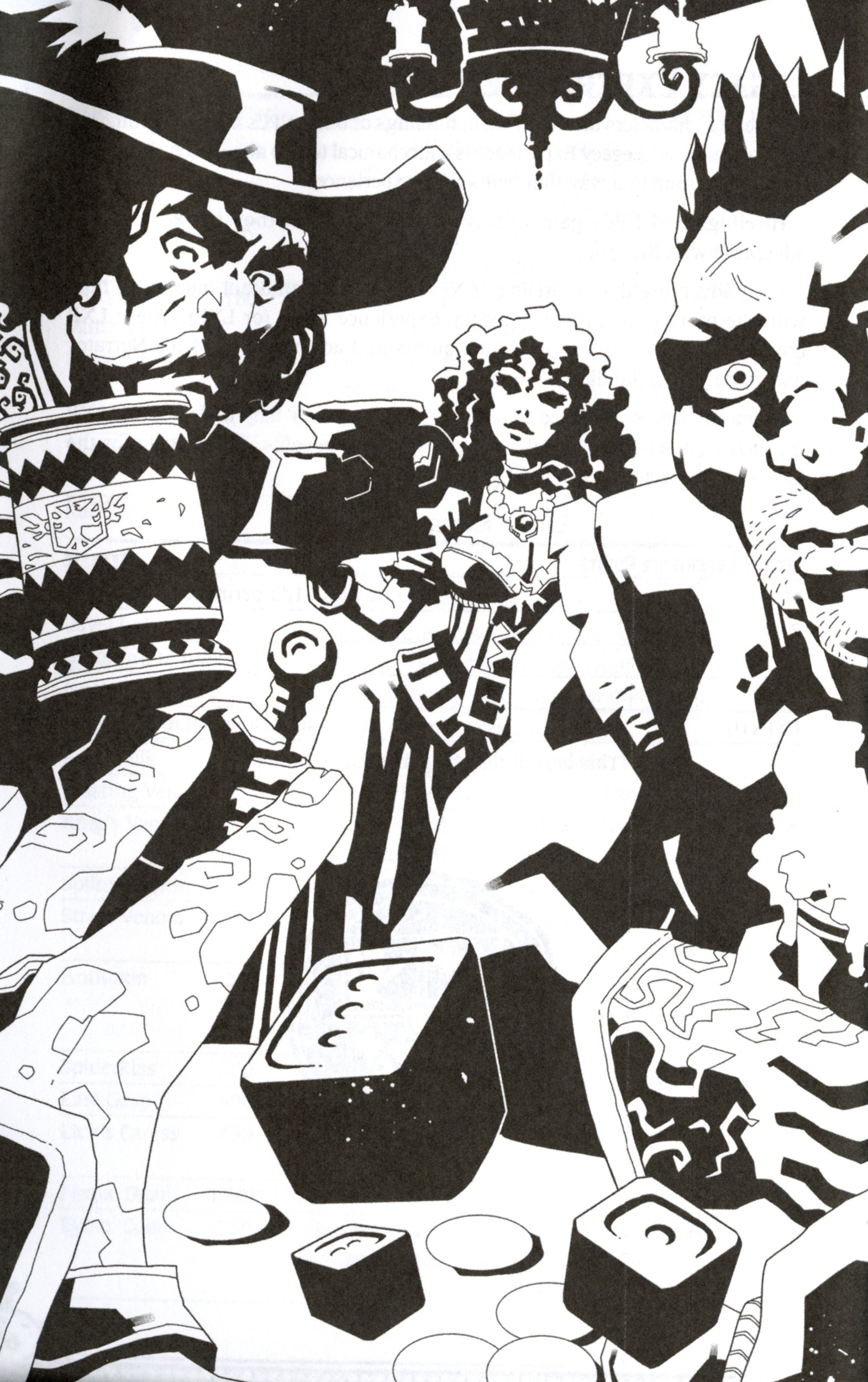 We've also added over 10 pages of art by Ger Curti (which comes to something like 5 half-pages, 4 new character illustrations, enemy art, 20 spot illustrations, and maps!), a new cover by Daniel Jimbert (the cover from the Spanish translation!), a new fiction piece from gaming author Mari Murdock and lots more!