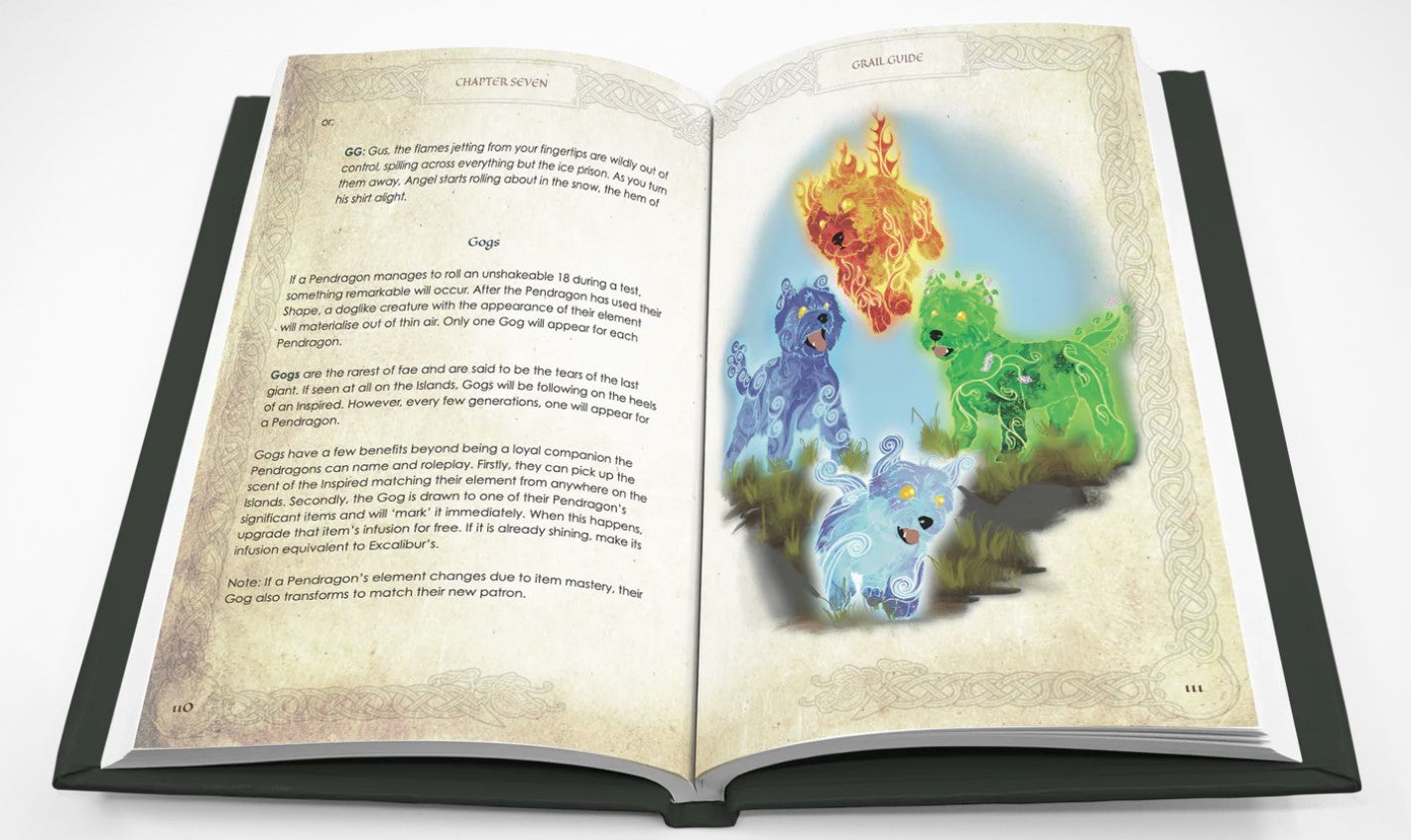 For the most fun, we recommend running the game with five players. One player volunteers to be the Grail Guide (GG), whilst the others form a party of Pendragons. It’s the Guide’s role to describe the Islands, plan the Questing Days (adventures) and give voice to the many characters and creatures the Pendragons will meet. We recommend the role to an adult or confident storyteller. Sessions typically run 2-3 hours and can feature anything from a series of intense battles to a relaxing afternoon of downtime.