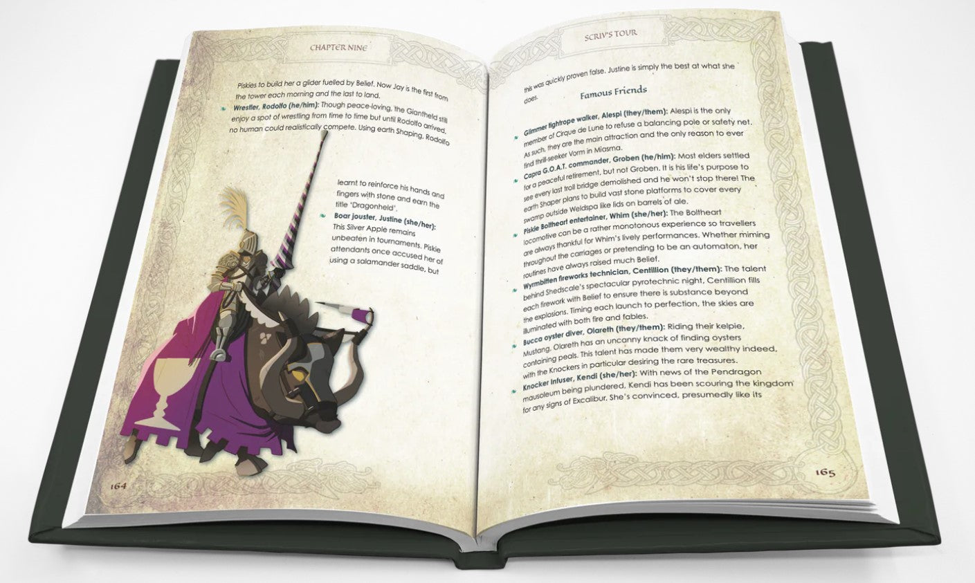Beyond Shaping, Inspirisles offers everything enthusiasts have come to expect from a modern RPG. Alongside the natural benefits of roleplaying, we have wholesome character creation, a simple but engaging 3d6 rolling mechanic, an intuitive guide for planning and running sessions, exhaustive story prompts, robust safety tools and disability inclusion throughout.