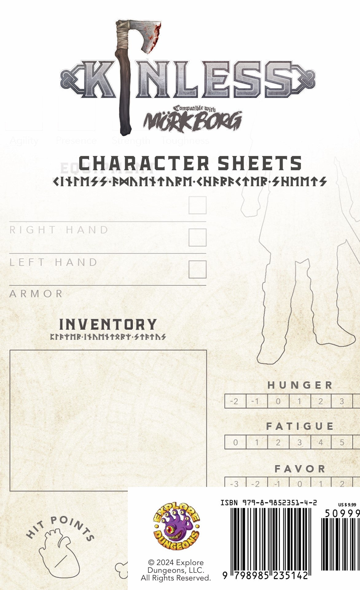 Additional character sheets for your Kinless game, includes male, female, and blank character art.