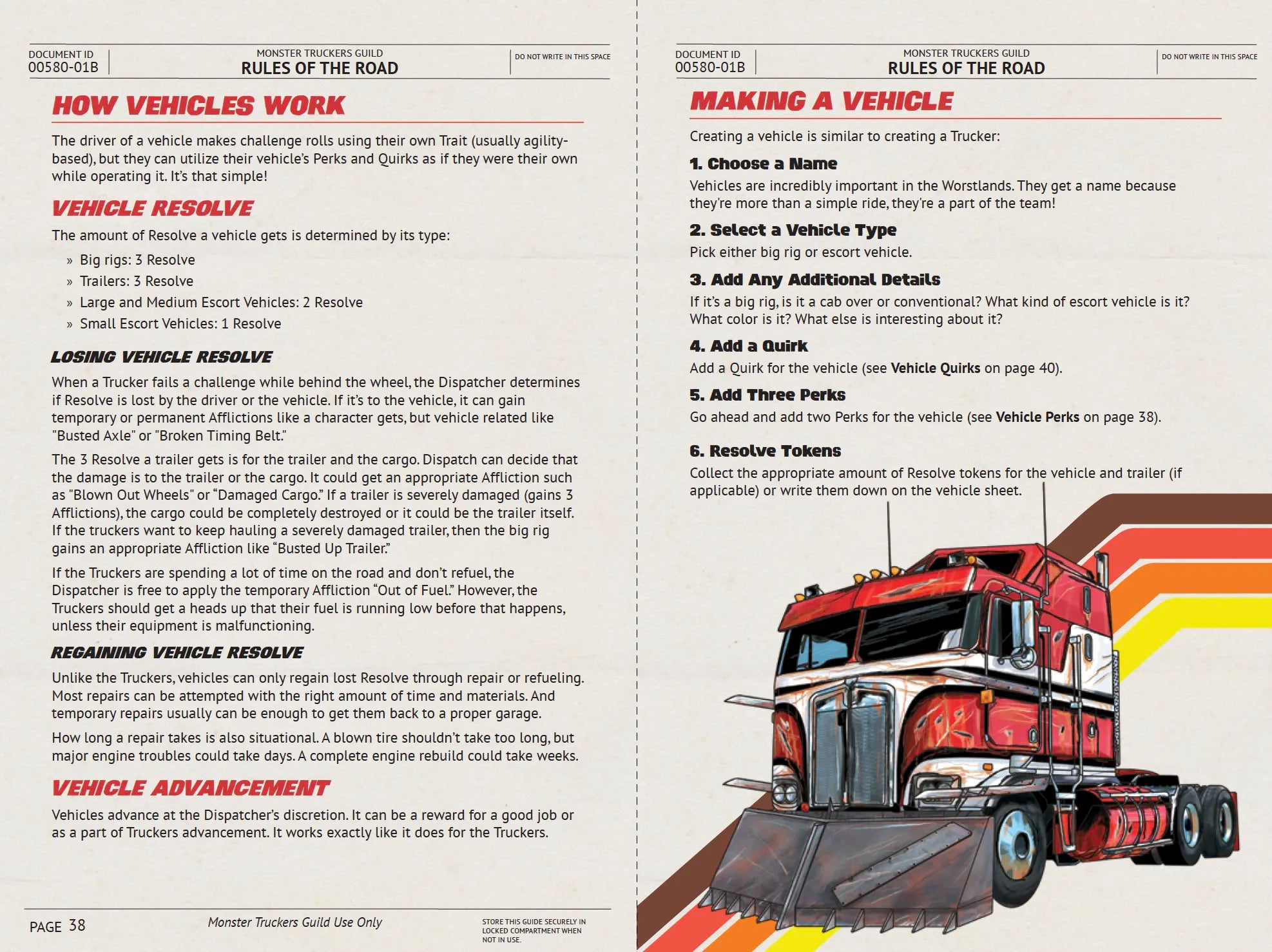 Inside you'll find the wild and fun Monster Truckers game with character creation rules, vehicle rules, background on the world of Monster Truckers, semi truck and trailer info, and two exciting adventures.