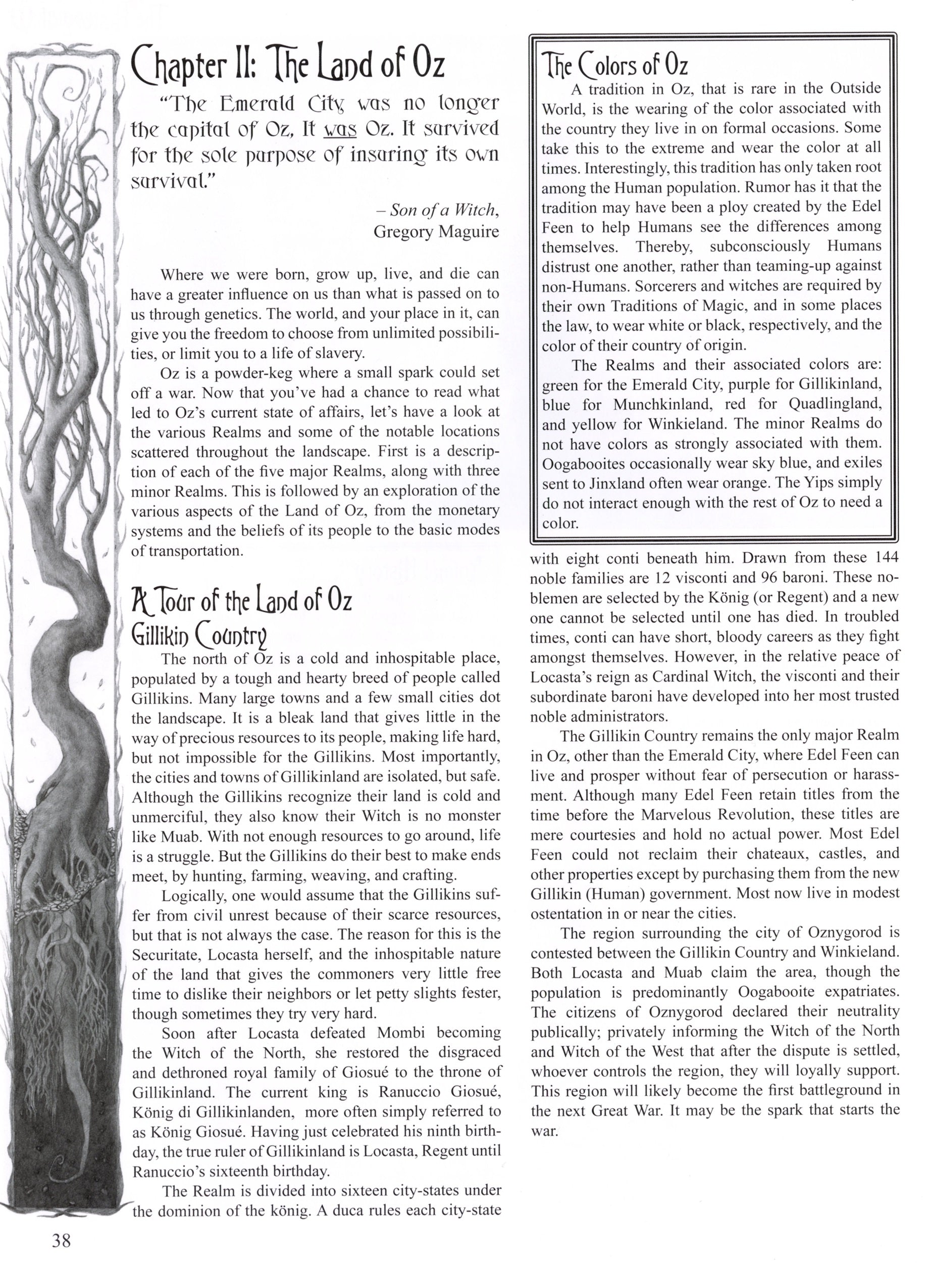 The exception is Dorothy. She never went to Oz...yet. You play the role of an Outsider. Or, you can play a native of Oz, be he a mutated Munchkin, tribal Quadling, or even an Automaton, a sentient clockwork machine, among dozens of other possibilities.