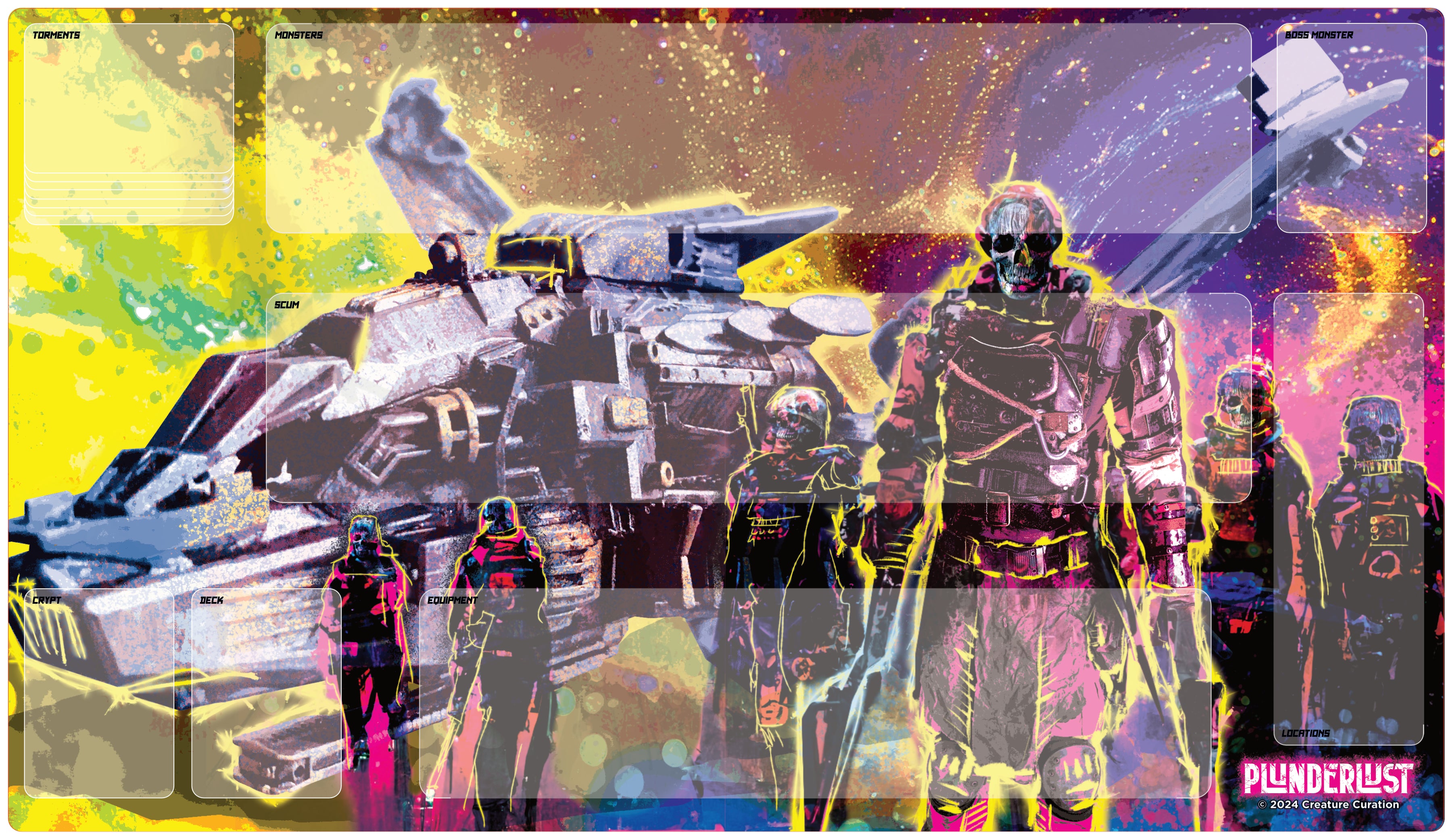 Fight your way through derelict starships and stations as Raider crews plundering for survival. In Plunderlust, each player takes on the role of a scrappy plunderer and their crew of gruesome Space Raiders salvaging whatever they can from derelict space stations and starships. Earning creds to buy gear will ensure they live a little longer when facing the monstrous threats lurking in the Grimm Dying Universe.