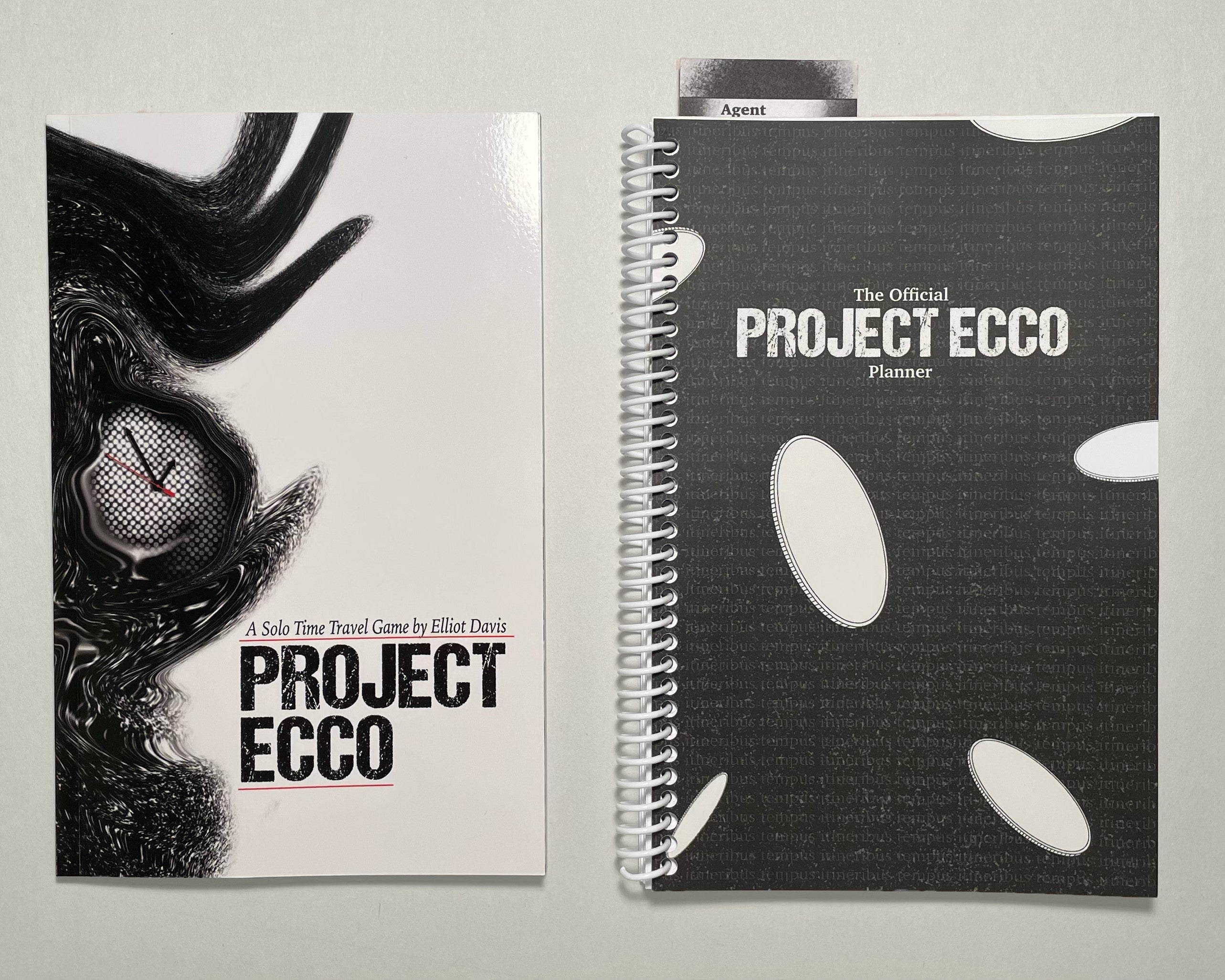The Official Project ECCO Planner is a black-and-white, wire-bound, 116-page, 5.5"x8.5" diary.