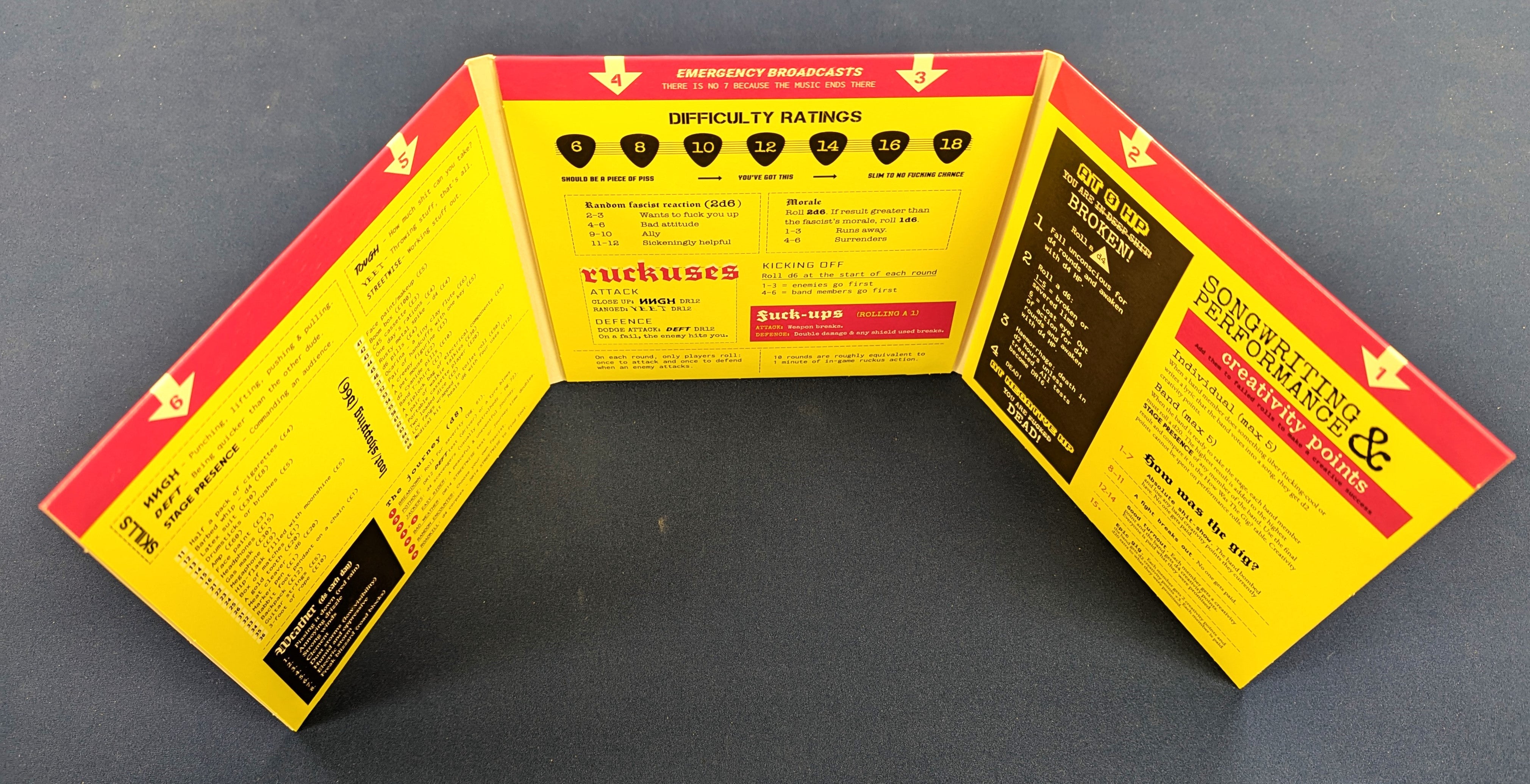 A seven-inch gatefold printed by Cram Distribution in the UK. Pantone colours to match the game book, handy reference on the BM facing side and sleeve to store notes or extend the screen.