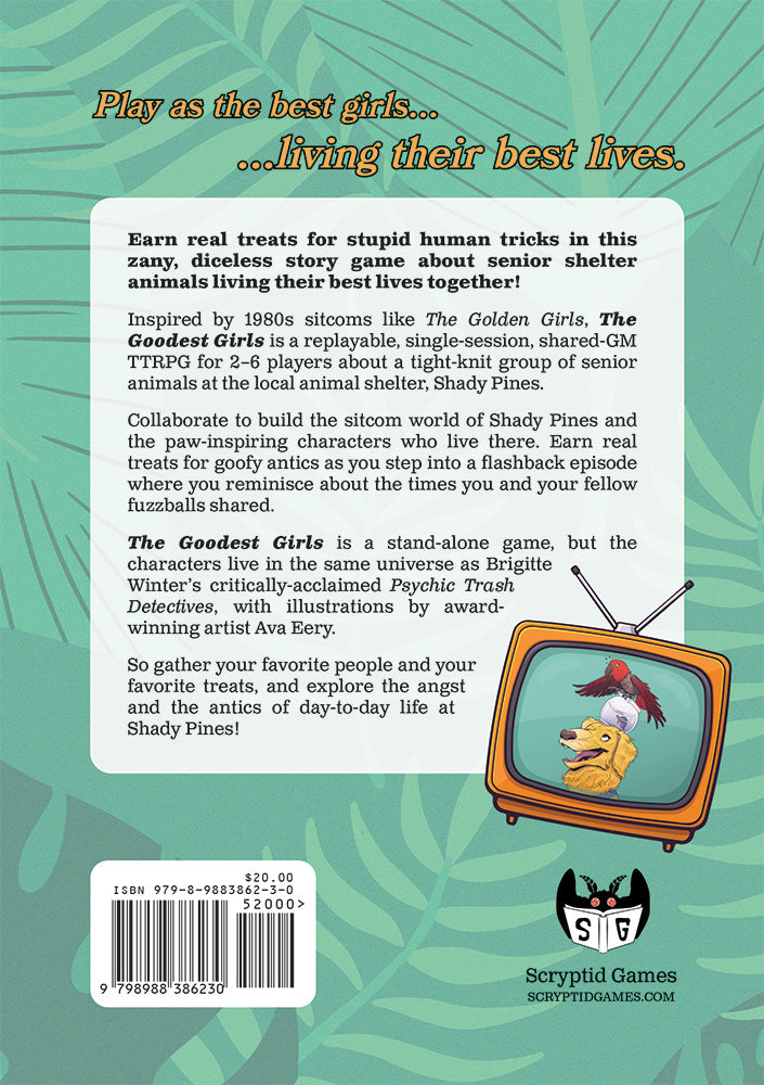 Inspired by the sitcom The Golden Girls, this is a replayable, single-session, shared-GM TTRPG for 3-5 players about a tight-knit group of senior shelter animals living their best lives together at the local shelter, Shady Pines.