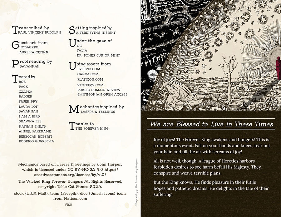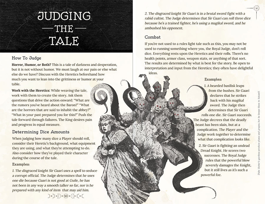 The Wicked Forever King Hungers and the only thing that can stop him are desperate Heretics who must race against time to stop him! If the Wicked Forever King feasts, it's the end of the world in this dark fantasy, nightmare fueled, and often funny, tabletop role playing game.